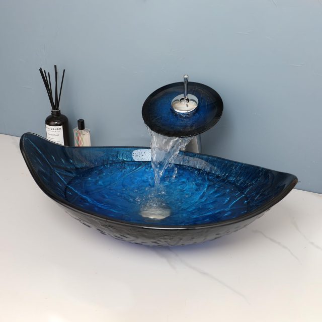 Transform your bathroom into a serene oasis with the Hand Painted Blue Leaf Glass Waterfall Sink & Faucet Set. Inspired by nature and crafted with care, this luxury glass basin captures the flowing beauty of water and leaves in stunning detail. Each sink is uniquely hand-painted, making it not just a fixture—but a piece of art that adds sophistication and calm to your daily routine.