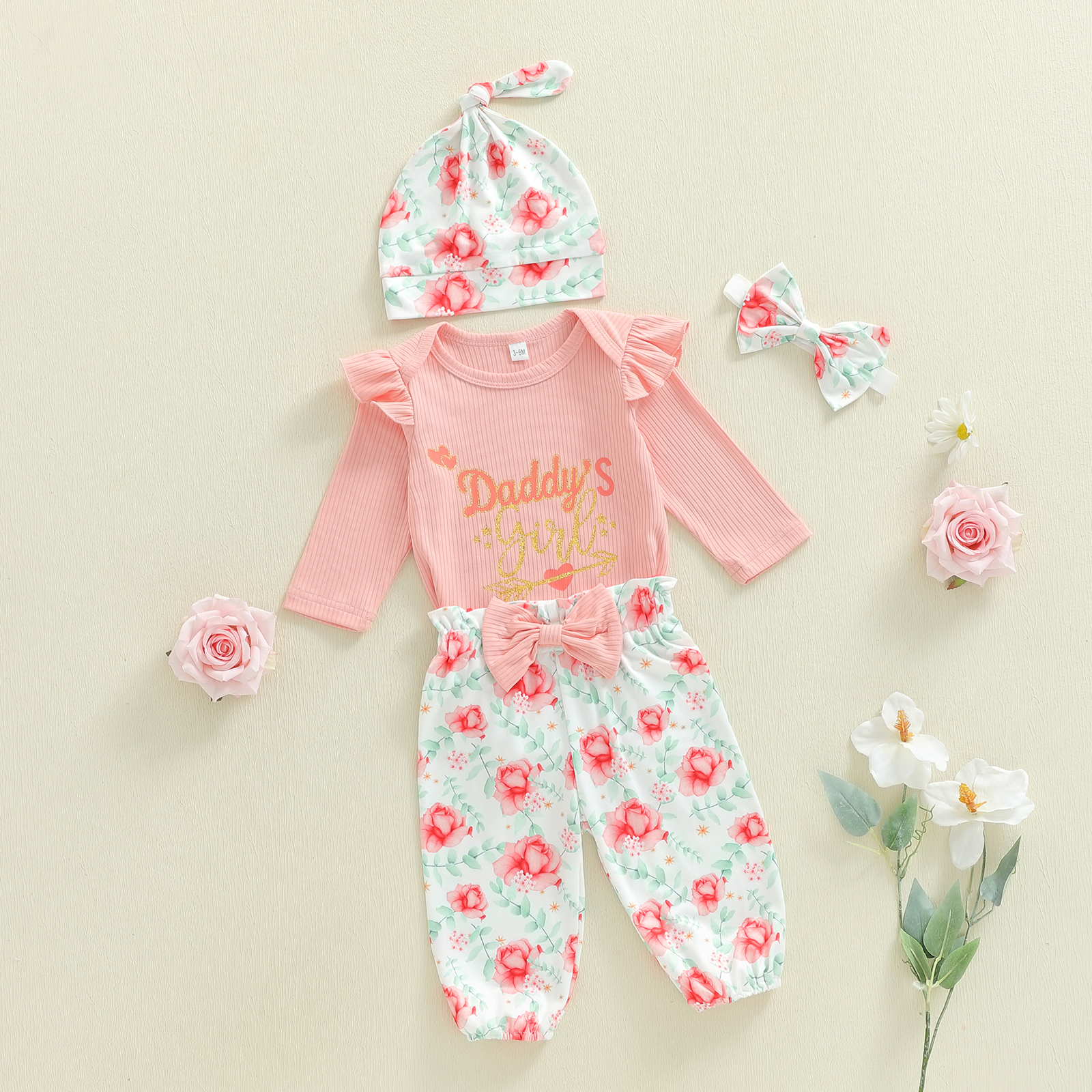 Infant Baby Girl 4-Piece Floral Letter Romper Outfit Set