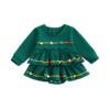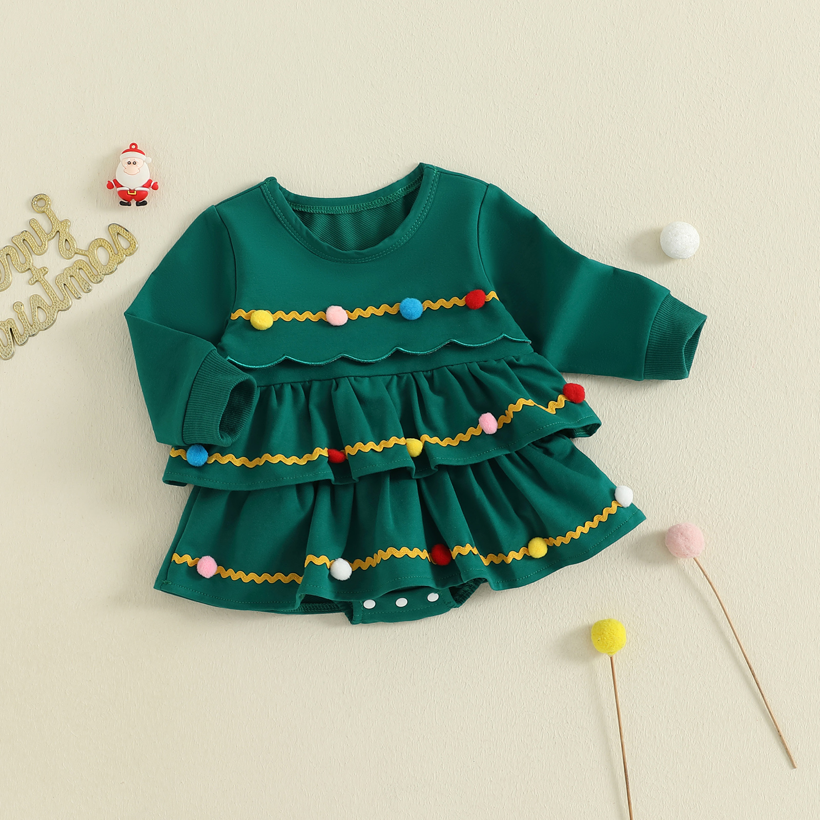 Make this season even more magical with this festive baby girl romper dress. Designed with soft pom details and a layered skirt look, this outfit blends holiday charm with everyday comfort. The gentle green tone and playful festive pattern create a sweet Christmas vibe, perfect for creating memories and capturing beautiful photos with your little girl.