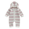 Tregren 0-18M Infant Baby Girl Knit Romper Sweater Long Sleeve Stripes Print Button Down Hooded Jumpsuit Newborn Pajamas Clothes