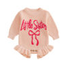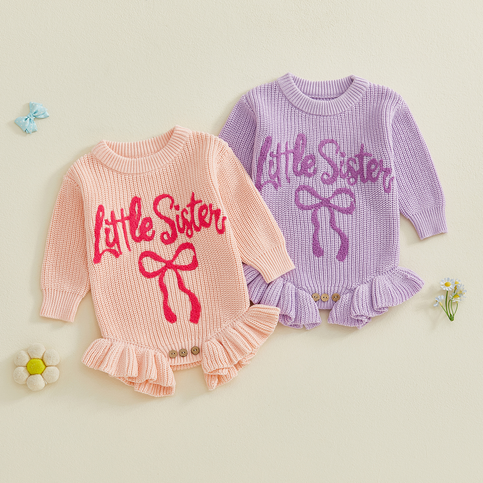 Dress your little one in warmth, comfort, and charm with this beautifully designed infant girl knitted sweater romper. Made for everyday sweetness, this all-in-one outfit blends soft fabric with adorable details to create a look that feels as good as it looks. The gentle knit texture keeps your baby cozy, while the delicate letter design and bow embroidery add a timeless, cute touch perfect for precious moments.