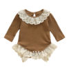 Baby Girl Lace Trim Long Sleeve Romper for Newborns to 18 Months