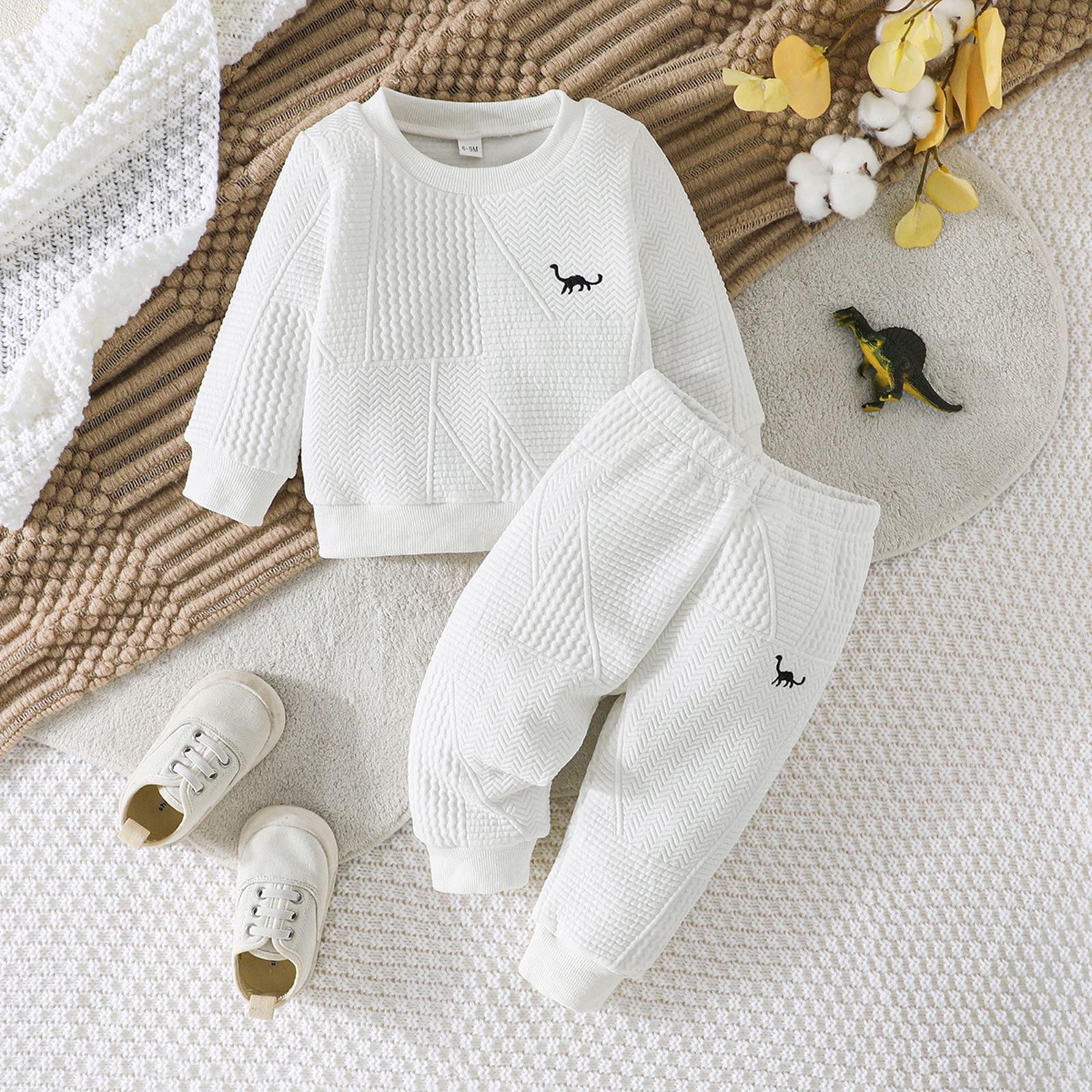 Toddler Baby Dinosaur Embroidered Fall Outfit 2-Piece Sweatshirt and Pants Set