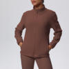 This jacket stands out thanks to its soft plush fabric, high neck design, and functional features. The knit construction ensures a comfortable fit, while the windproof feature makes it perfect for outdoor activities, whether it’s yoga in the park or a run on a breezy day. Plus, the stylish slash pockets are the perfect touch, adding both fashion and practicality. It’s the perfect jacket for women who want something fashionable yet functional, without having to sacrifice comfort.