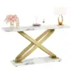 Bring sophistication and functionality into your home with the 55 Inch Modern Gold Console Table. Designed to impress, this striking piece features a stunning white faux marble tabletop that perfectly complements its golden metal frame. The elegant combination of materials gives it a luxurious charm that instantly transforms any space — from your entryway to behind your sofa or in a stylish hallway.