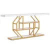 Extra Long Gold Console Table with Faux Marble Top and 4-Tier Storage