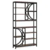 Bring style and function together with this 8-tier industrial bookshelf, a perfect blend of modern elegance and practical storage. Designed with a striking half-moon silhouette and geometric shelves, it adds an artistic flair to any living room, home office, or studio. The mix of rustic wood tones and a sleek black metal frame creates a timeless, industrial look that effortlessly complements any décor.