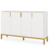 Bring a touch of luxury and sophistication to your home with this modern storage cabinet. The sleek combination of white wooden panels and striking gold handles and legs creates a visually stunning piece that complements any interior style. The carved detailing on the door surfaces adds a refined decorative touch, making it a true statement piece for your living space. Its contemporary color palette of white and gold blends seamlessly with any décor, enhancing the charm of your home.