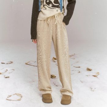 High-Waist Retro Straight-Leg Knit Pants for Women