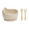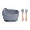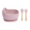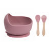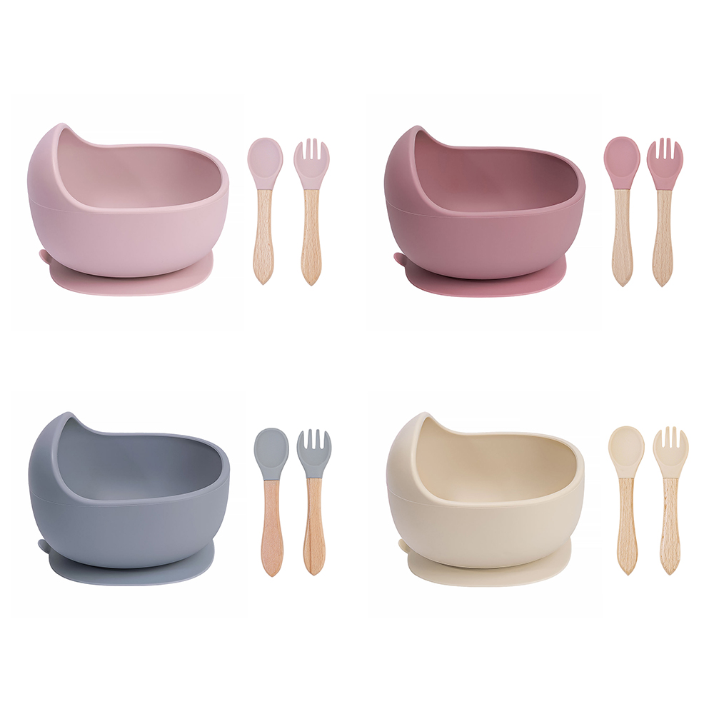 3pcs Silicone Baby Feeding Bowl Set with Wooden Training Spoon & Fork