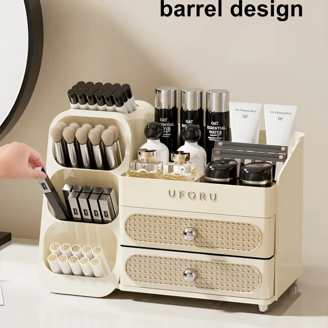 Turn your daily beauty routine into a calm, clutter-free experience with this large-capacity makeup and skincare organizer. Designed for modern vanities and desktops, it offers a clean, elegant look while keeping all your essentials neatly in place. From makeup brushes and palettes to skincare bottles and accessories, everything has its own dedicated space.