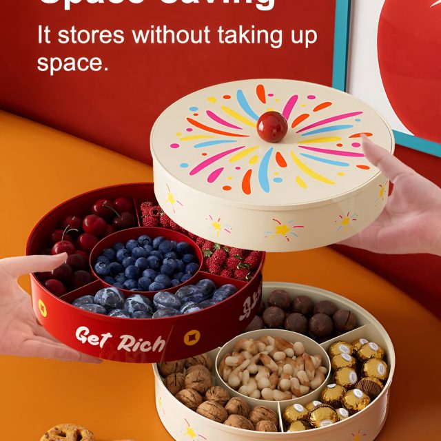 This platter is more than just a snack holder. It’s a decorative piece that adds elegance to your living space. Use it during movie nights, family gatherings, parties, or even for everyday snacking. It’s perfect for serving fruits, nuts, chocolates, dried snacks, and small treats in one organized display.