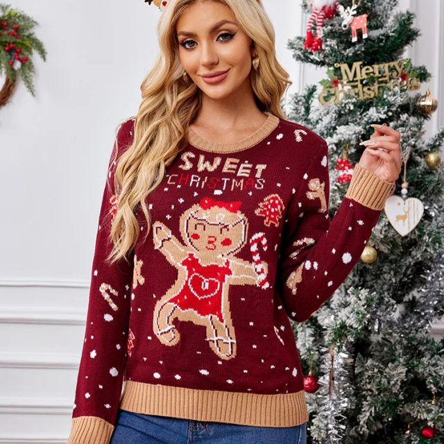 This sweater stands out with its cheerful Christmas cartoon design and relaxed casual style. It’s not just about looking festive, it’s about feeling great too. The medium-stretch acrylic fabric hugs just enough to feel soft without feeling tight, making it ideal for long wear. Its classic O-neck and regular fit give it a timeless look that pairs easily with jeans, leggings, or skirts.