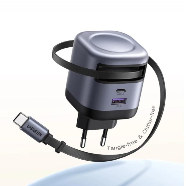 UGREEN 45W GaN Retractable Cable Charger UFCS PPS QC PD 3.0 For iPhone 17 16Pro Samsung S25 iPad Macbook Air Tablet Fast Charger