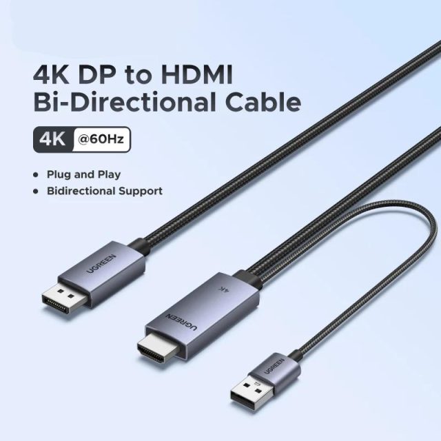 Thanks to its bidirectional design, this cable allows you to easily switch between DisplayPort and HDMI devices, offering versatile functionality. Need to connect your laptop with DisplayPort to an HDMI display? It’s a breeze. Want to use your HDMI-enabled device with a DisplayPort monitor? No problem. The 4K DP to HDMI Bidirectional Cable Adapter works in both directions, making it incredibly versatile and easy to use in any setup.