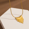 Made from high-quality stainless steel and finished with advanced gold plating, this necklace is built to stay radiant. The smooth surface is carefully polished by hand, giving it a refined glow that feels luxurious against the skin. The fan-shaped pendant symbolizes elegance and gentle movement, adding a romantic touch to any outfit.