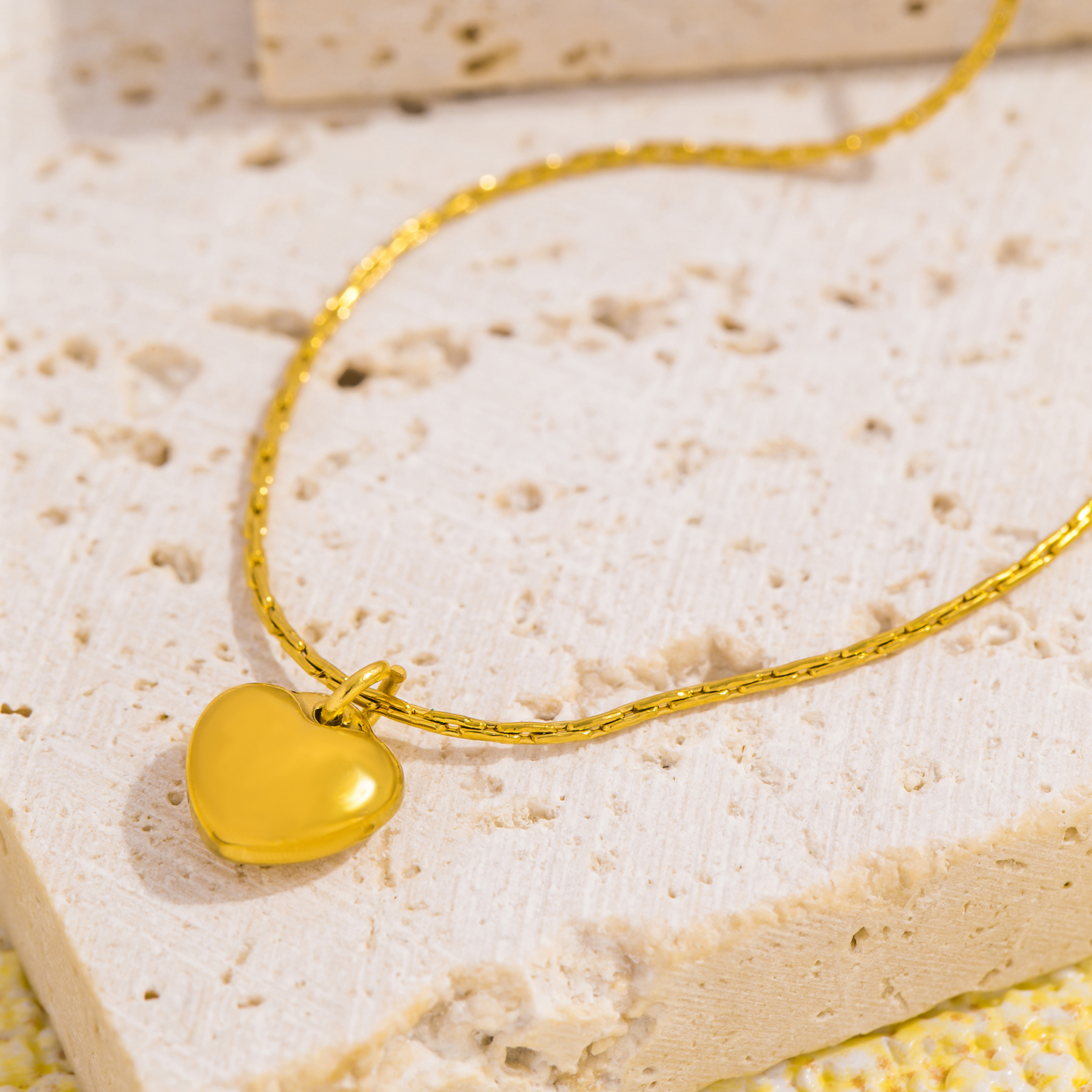 Crafted from durable stainless steel and finished with real gold PVD plating, this necklace is made to keep its shine through everyday life. The smooth heart pendant measures approximately 0.31 inches by 0.31 inches, making it subtle yet eye-catching. The sleek snake chain sits comfortably on the neck and moves fluidly with you, creating a polished look from every angle.