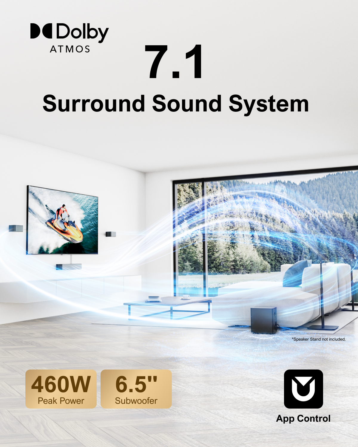 • Powerful Output: 460W of rich, detailed sound that transforms your home into a true theater.