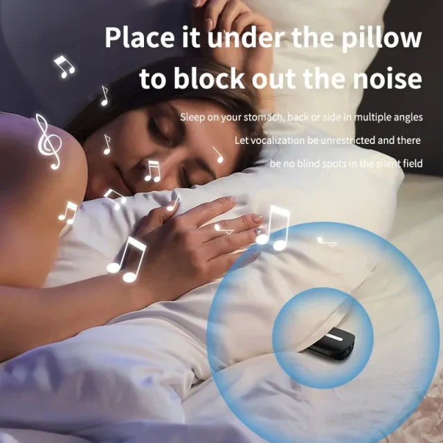 Unlike conventional speakers, this mini soundbar gently vibrates sound through your pillow, stimulating brainwaves that aid in relaxation. The result? A serene, tranquil atmosphere that helps you drift off into a deep sleep. Whether you’re on your side, back, or stomach, this speaker ensures that your sleep remains undisturbed from noise, leaving you with only calming sounds to guide you to dreamland.