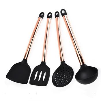 Rose Gold Silicone Stainless Steel Kitchen Utensil Set – Non-Stick Cooking Tools