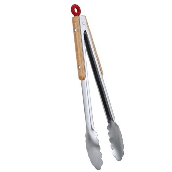 Stainless Steel Kitchen Tongs with Wooden Grips – BBQ Food Tongs