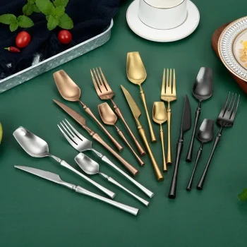 24-Piece Matte Black Gold Silver Stainless Steel Cutlery Set for 6