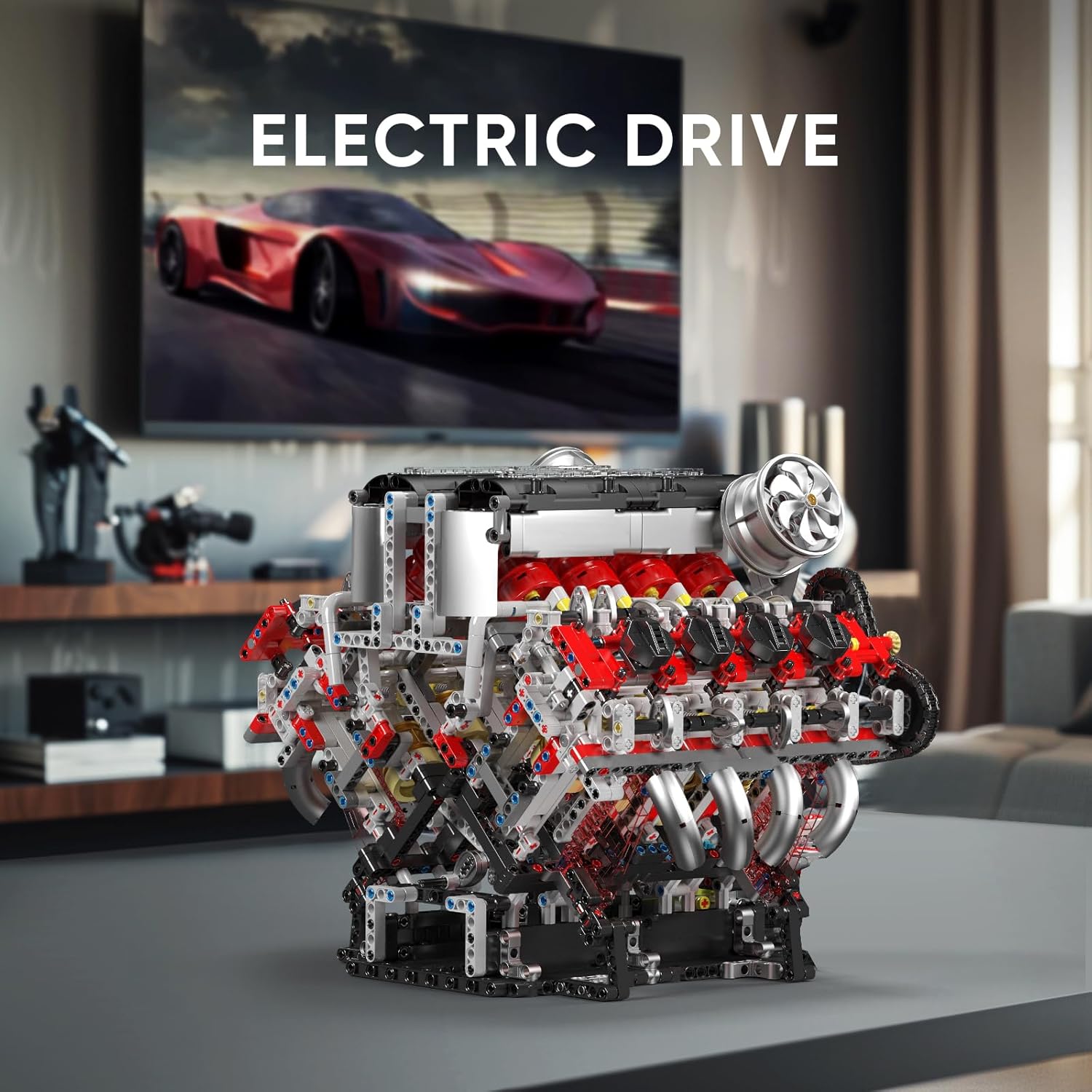 Unleash your inner engineer with this V8 Engine Model Kit That Runs – a hands-on, fully functional building set designed for both kids and adults who love to build, explore, and understand how real engines work. With over 2,700 precision pieces, this advanced building set brings the thrill of mechanical engineering right to your desk or display shelf. Watch the pistons fire, the crankshaft turn, and the turbocharger spin as your creation comes to life powered by its included motor and battery.