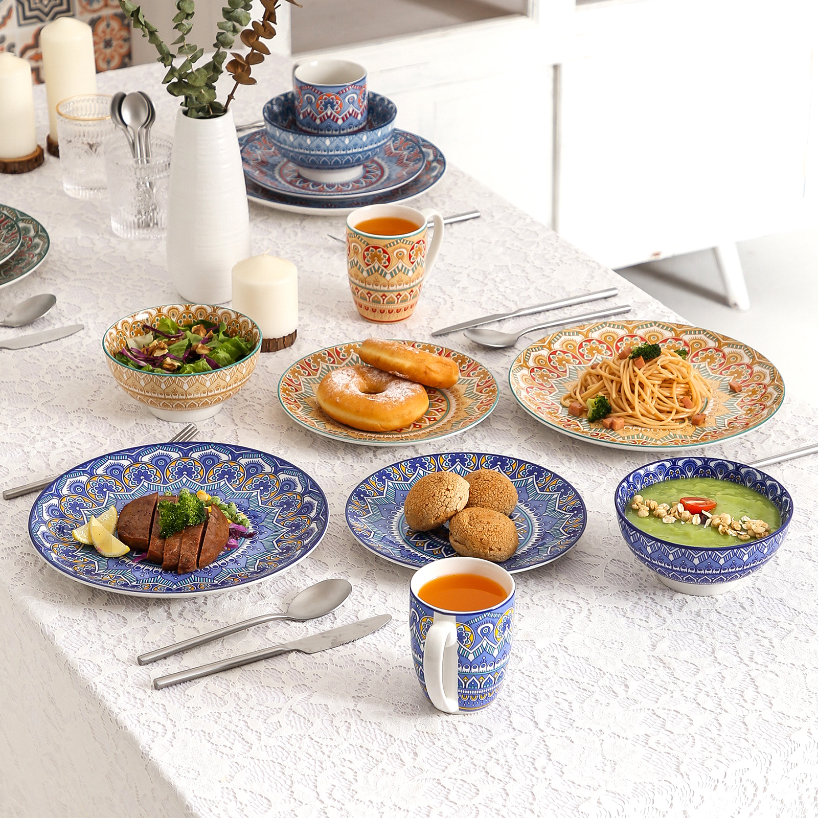 vancasso 16/32/48-PCS Ceremic Plate Porcelain Dinnerware Set Bohemian Mandala Patterned with Dinner Plate,Dessert Plate,Bowl,Mug