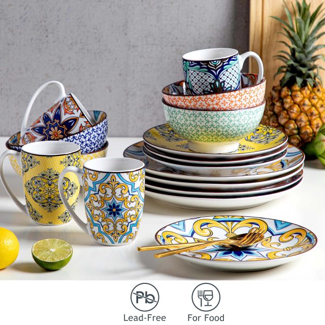 Crafted from premium porcelain fired at high temperatures, this dinnerware set is solid, durable, and chip-resistant. The vibrant glaze is colored with inorganic pigments, ensuring that the colors stay bright and beautiful without fading over time. Its smooth, nearly-nonstick surface makes cleaning effortless—just place it in the microwave or dishwasher for easy everyday use.