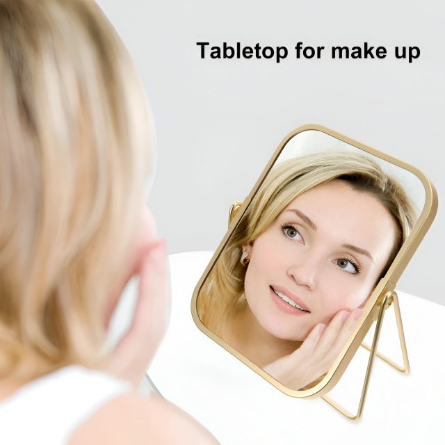 Elevate your daily beauty ritual with the Luxury Matte Gold Vanity Makeup Mirror. Designed for those who appreciate both function and style, this exquisite tabletop mirror combines sophistication with everyday practicality. Its stunning matte gold finish and sleek metal stand instantly transform any space into a modern vanity haven. Whether you’re perfecting your morning makeup or ensuring a precise shave, this mirror is your ultimate companion for flawless results.