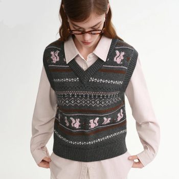 Retro Geometric Knit V-Neck Vest for Women