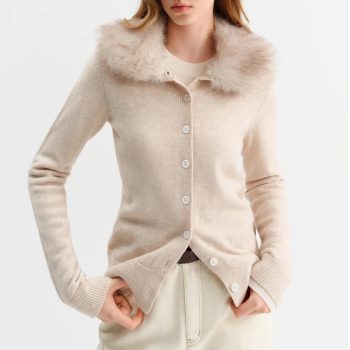 Winter Cozy Faux Fur Collar Knit Cardigan for Women
