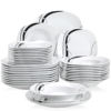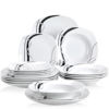 Bring a sense of calm elegance to your table with this beautifully designed porcelain dinnerware set. Finished in a soft ivory white tone and accented with clean black lines, each piece feels modern, timeless, and easy to style. Whether you are serving everyday meals or hosting a special dinner, this set instantly elevates the look of your table without feeling overdone.