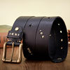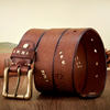 Vintage Full-Grain Cowhide Leather Belt with Handmade Copper Buckle