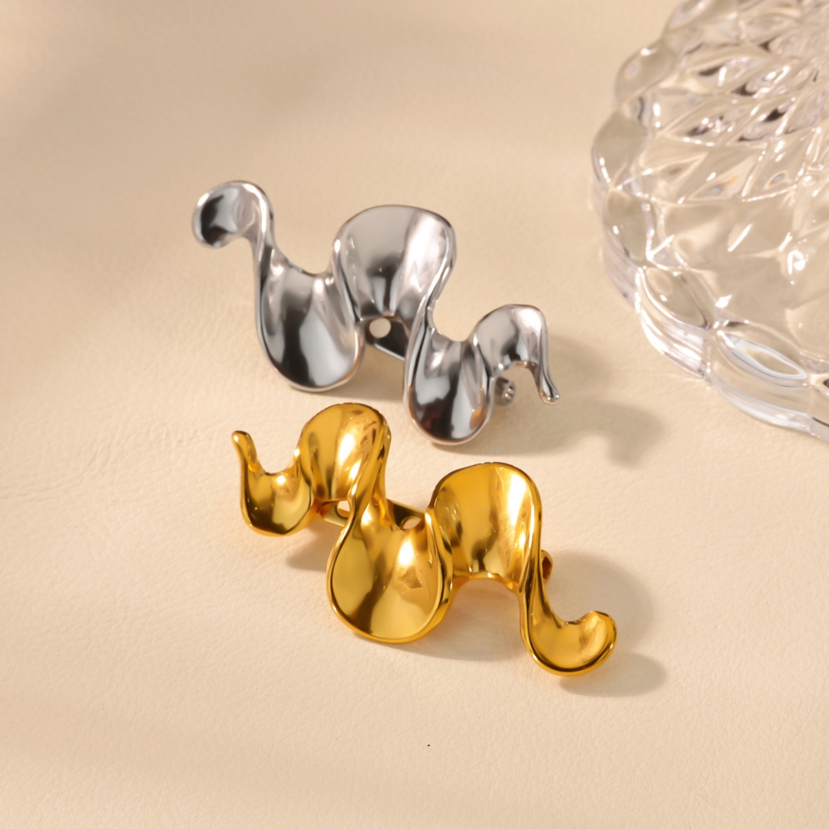 Designed with a geometric shape, the brooch features an irregular, flowing S-shape that captures attention with its dynamic and sophisticated look. Its minimalist yet artistic design makes it a versatile accessory that pairs well with both casual and formal wear. The metal’s polished surface reflects light beautifully, ensuring that you shine at every occasion.