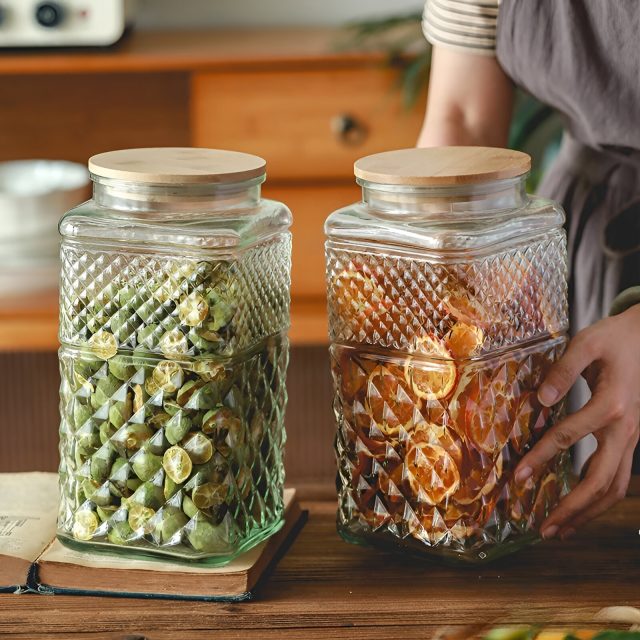 Upgrade your kitchen with a storage solution that blends beauty and function. This vintage embossed glass storage jar is designed to keep your everyday essentials fresh while adding a warm European-style touch to your space. With its elegant textured glass and natural wooden lid, it looks just as good on open shelves as it does neatly arranged in cabinets.