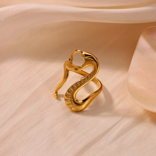 Made from durable stainless steel and finished with luxurious 18k gold plating, this ring offers both beauty and longevity. Its smooth snake-inspired curves wrap gracefully around the finger, creating an eye-catching design that stands out without feeling overwhelming. Lightweight and comfortable, it’s perfect for daily wear or special occasions. This ring shines best during festive celebrations, evening outings, or moments when you want to add a touch of mystery and sophistication to your outfit. The serpent symbol has long represented transformation, confidence, and strength—making this ring more than just jewelry. It becomes a personal emblem of empowerment.