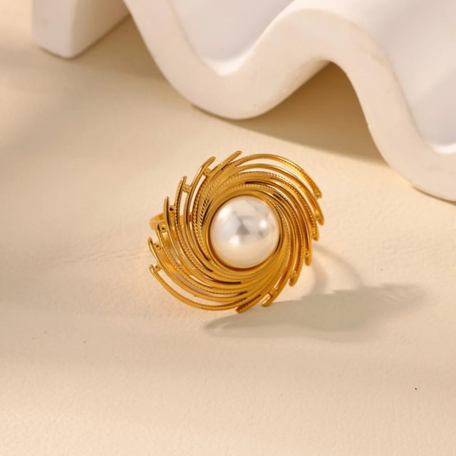 Vintage Tassel Pearl Geometric Ring for Women – 18K Gold Plated Stainless Steel Jewelry