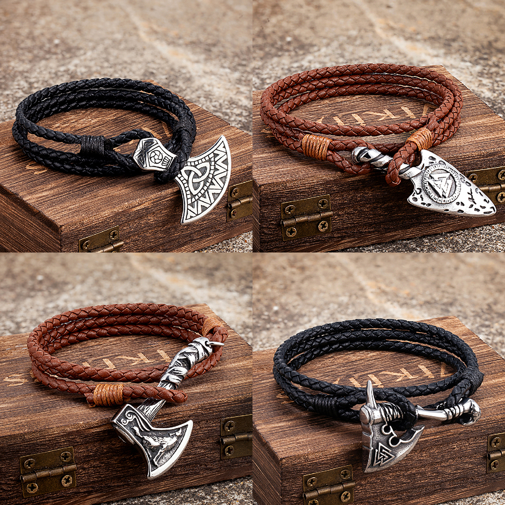 Step into the spirit of the old Norse world with this Vintage Viking Style Leather Wrap Bracelet. Crafted from genuine multi-layer leather, it features a bold stainless steel rune amulet that symbolizes strength, protection, and timeless warrior energy. Every detail is carefully designed to give you an accessory that is both rugged and refined, making it the perfect choice for men who want to stand out with effortless style.