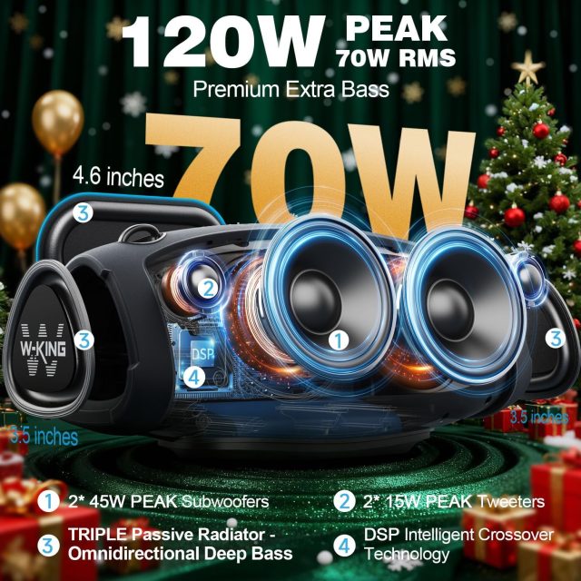 Unleash the power of superior sound with this 120W portable Bluetooth speaker. Whether you’re hosting a party, relaxing by the pool, or on an outdoor adventure, this speaker delivers crystal-clear highs, deep bass, and rich audio that fills the room. Equipped with cutting-edge technology, this speaker is designed to provide an immersive listening experience like no other. Its rugged design and powerful performance make it the perfect companion for every occasion.