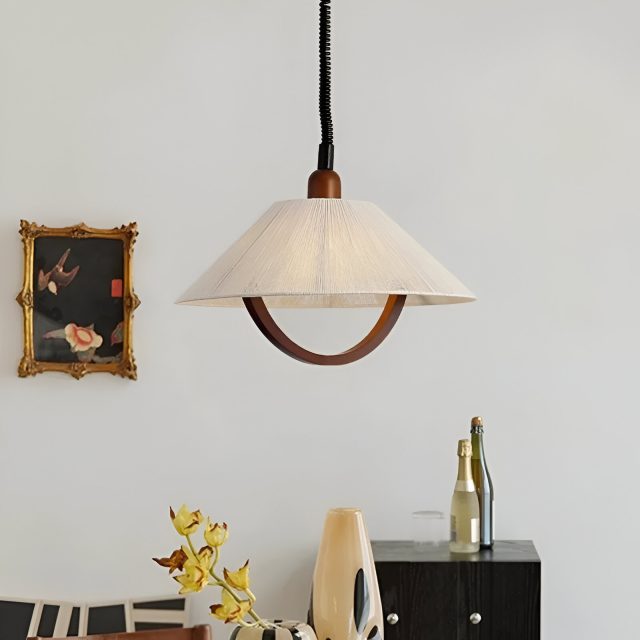 Made from a combination of natural wood and soft fabric art, this pendant light features a cotton rope lampshade that diffuses light beautifully. The result? A warm, welcoming glow that sets the perfect mood for dinners, conversations, or quiet evenings at home. The adjustable 59-inch hanging wire lets you customize the drop height to suit your ceiling and layout, making it ideal for spaces with both standard and high ceilings.