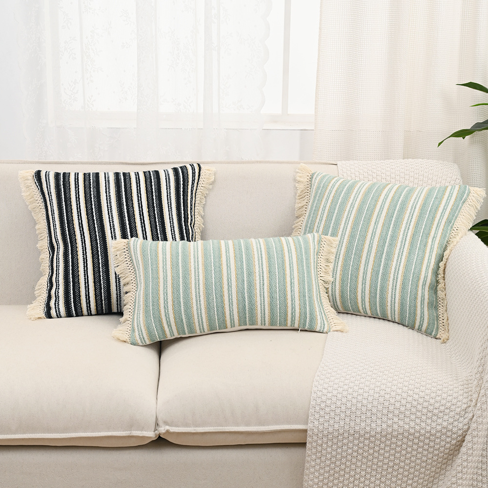 Available in two versatile sizes, 12 x 20 inches and 18 x 18 inches, this pillow cover fits standard throw pillows with ease. Use it to refresh your sofa, add comfort to your bed, or decorate a bay window or armchair. Its neutral, striped design makes it easy to mix and match with other cushions, blankets, and textures.
