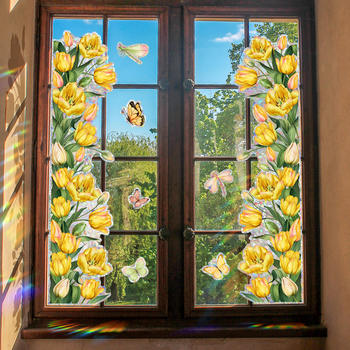 Double-Sided Pink Tulips and Butterfly Wall Stickers – Decorative Decals