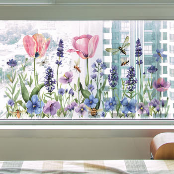 Pink Tulip Honeybee Window Cling Stickers – Decorative Glass Decals