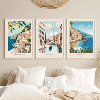 Italy Blue Coast Travel Landscape Canvas Wall Art – Amalfi, Positano & Venice Prints