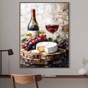 Rustic Watercolor Wine & Cheese Kitchen Wall Art Canvas