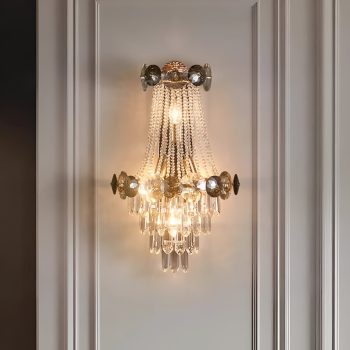 Luxury Crystal Wall Lamp – Elegant Iron & Crystal Light for Living Spaces
