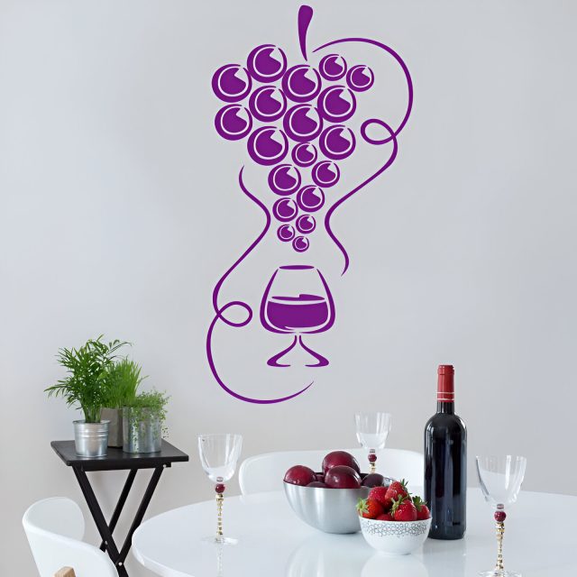 Gourmet Grape Wine Wall Decal – Elegant Vinyl Art for Kitchen & Bar Decor