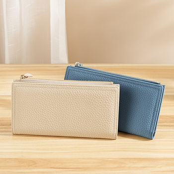 Genuine Leather Long Women’s Wallet with Zipper Coin Pocket and Card Holder