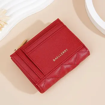 Luxury Women’s Genuine Leather Trifold Coin Purse Small Red Wallet